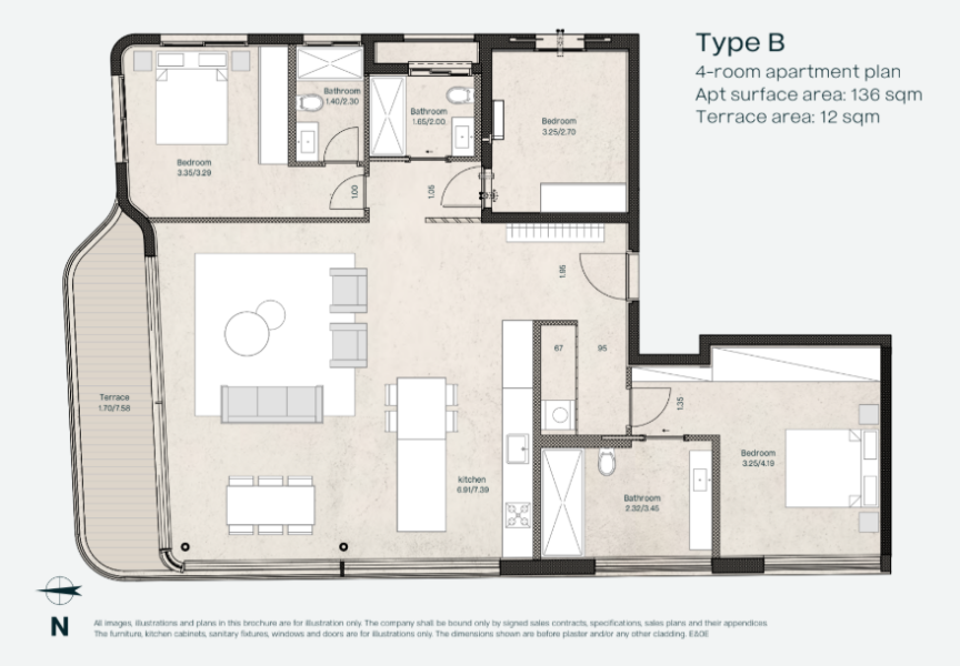 טיפוס B – דירת 4 חדרים