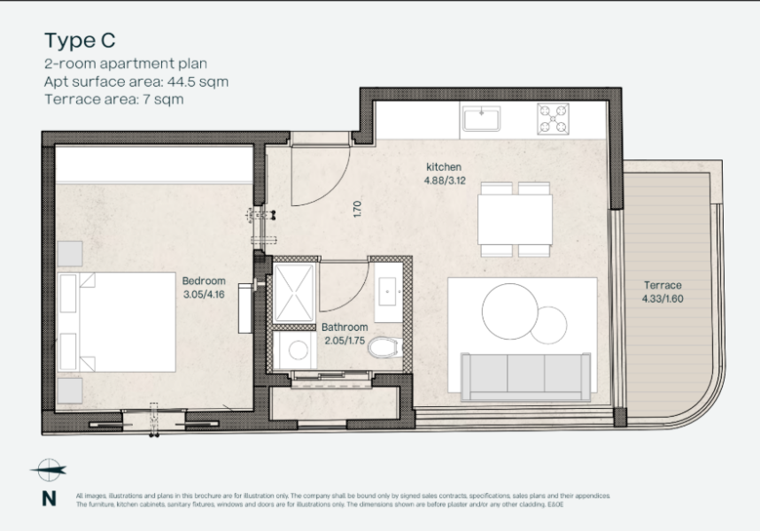 טיפוסים C ו-D – דירות 2 חדרים