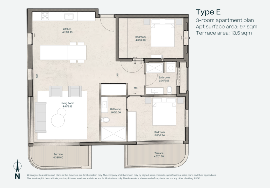 טיפוס E – דירת 3 חדרים