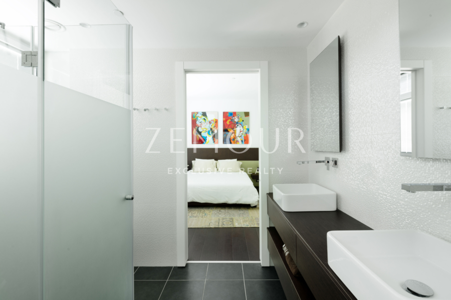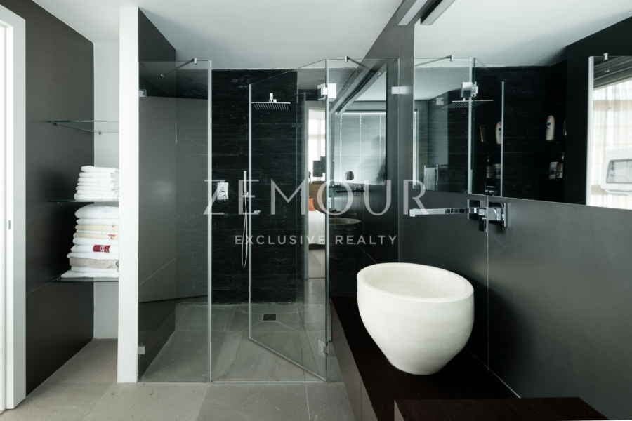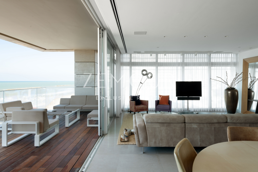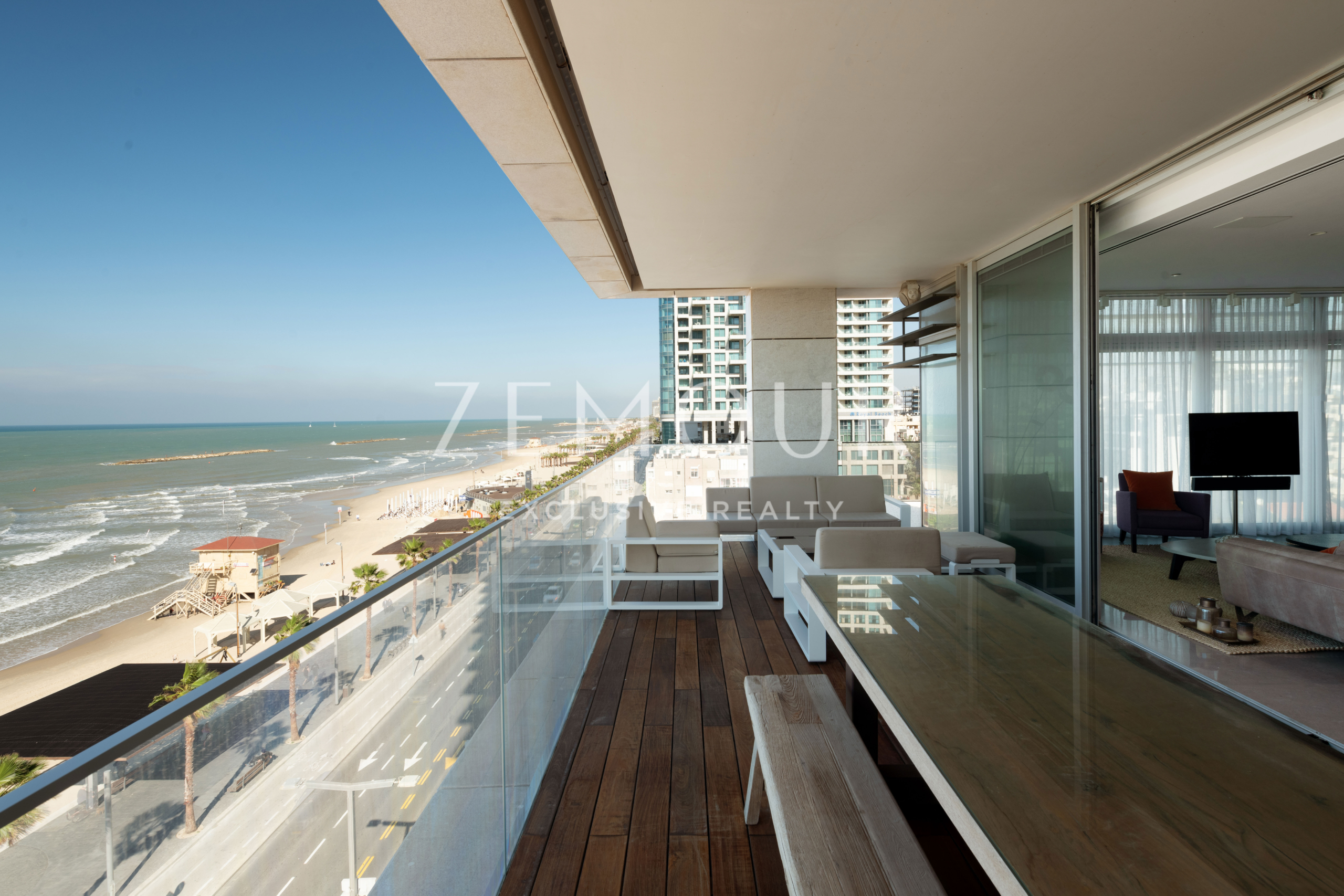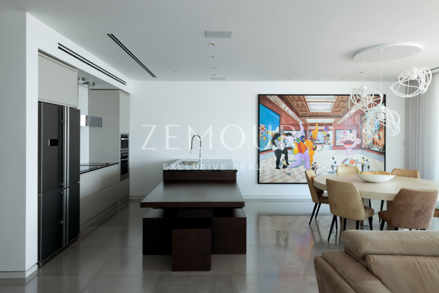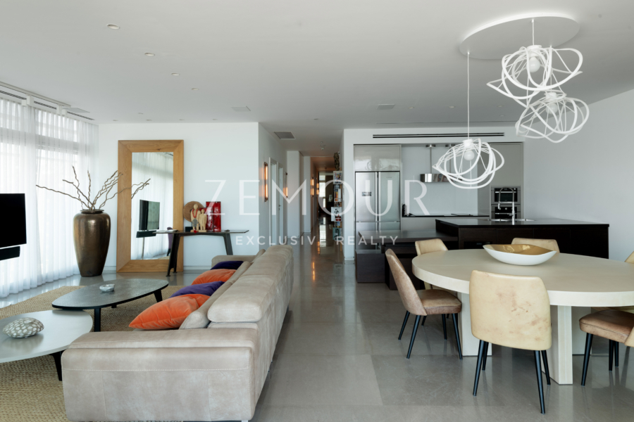 Is a 4 bedroom, 3.5 bathrooms apartment set over 198 sqm. Full length windows bring the sea and the sunshine indoors. Meticulously designed by headline interior designer Orly Shrem and fully equipped with high-end bathrooms and kitchen and smart technology.