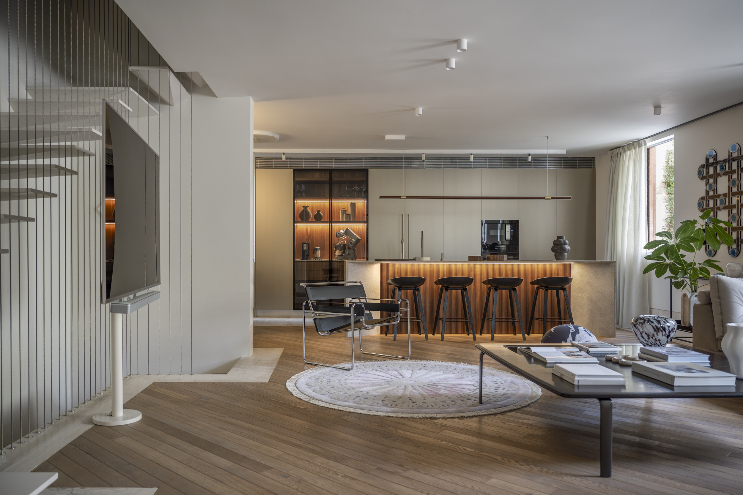 THE LOWER FLOOR UNVEILS A SECURE ROOM WITH AN ADDITIONAL ENTRANCE FROM THE UNDERGROUND PARKING—A TESTAMENT TO BOTH STYLE AND SAFETY.