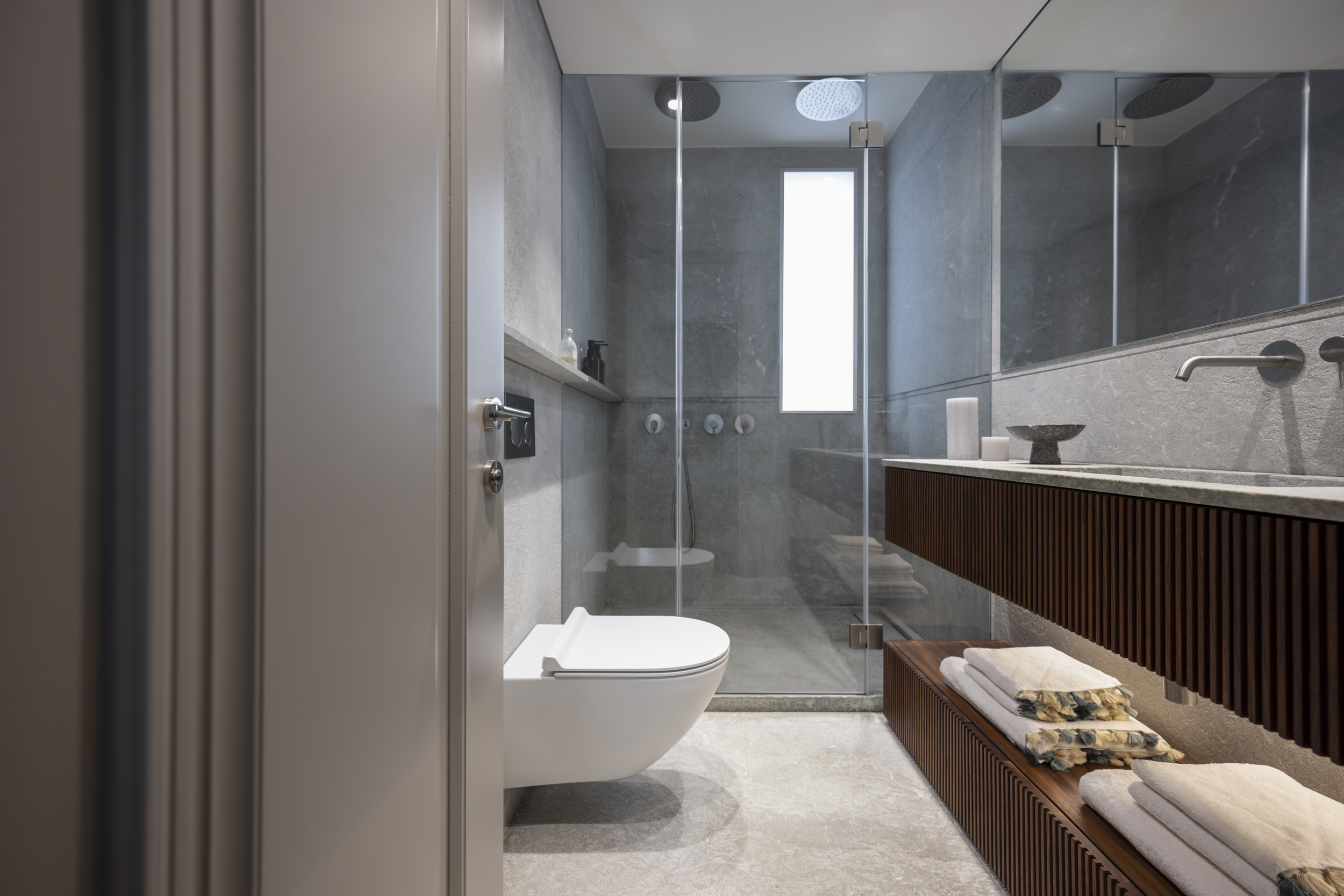 THIS ARCHITECTURAL MASTERPIECE BOASTS HARDWOOD AND MARBLE FLOORING, BESPOKE FLOATING STAIRS, VRF AC FOR OPTIMAL CLIMATE CONTROL, AND ITALIAN MARBLE STONE BATHROOMS THROUGHOUT.